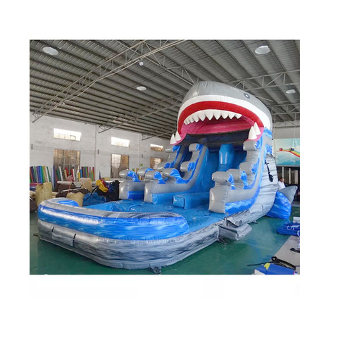 판매용 수영장이있는 대형 상어 풍선 워터 슬라이드